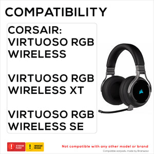 Disse ørepuder er designet specielt til Corsair Virtuoso RGB trådløs / SE / XT Hovedtelefoner. De passer ikke til andre mærker eller modeller. Dobbelttjek venligst modellen af ​​dit headset.