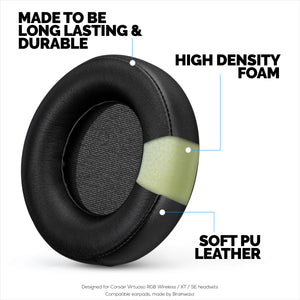Erstatningsørepuder til Corsair Virtuoso RGB Gaming Headset (trådløst/XT/SE), blødt PU-læder og ekstra komfort