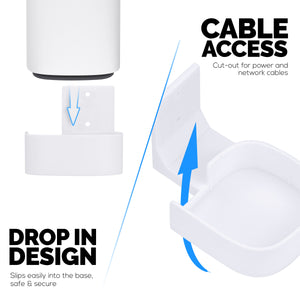 Vores montering er skræddersyet til at passe til formen på routeren og holder den fast, men med minimalt fodaftryk. Vil se godt ud i alle omgivelser i dit hjem eller kontor. Denne er designet til kun at fungere med Linksys Velop Pro 6E (AXE5400) Wifi Mesh Router.
